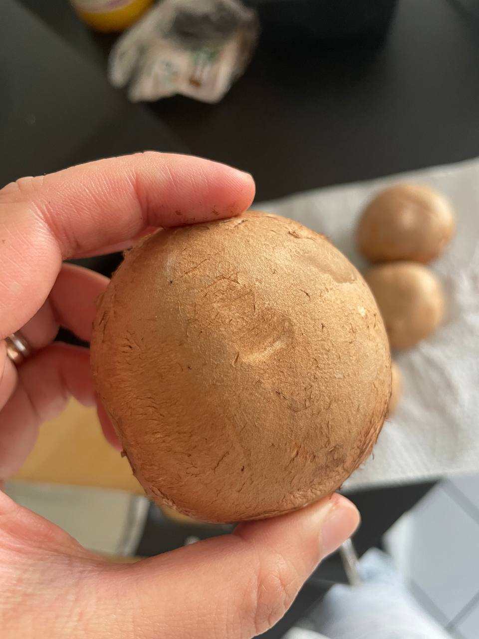 The cap of a champignon de Paris looks like a brown coconut with the husks removed.
