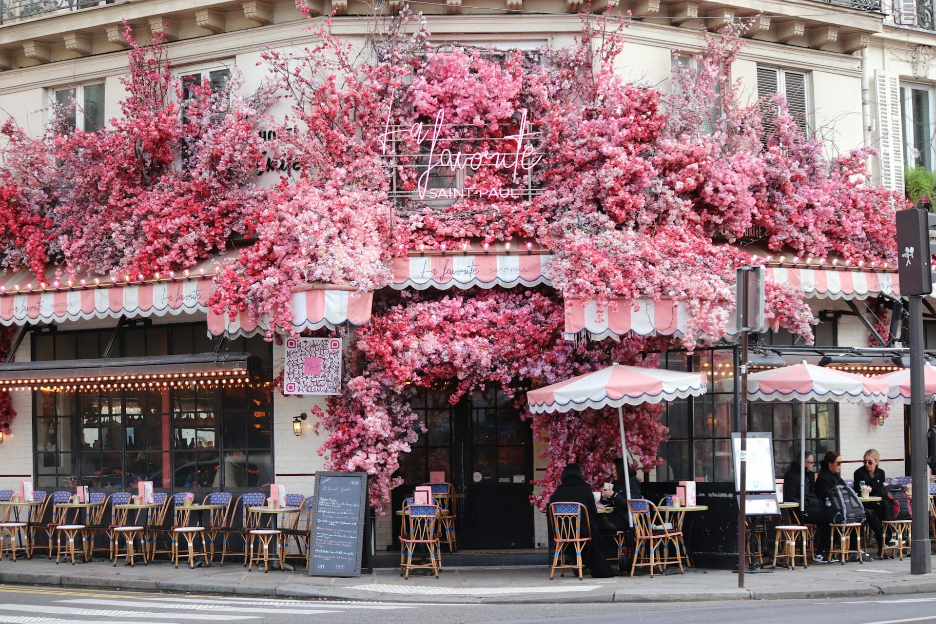Whenever you think of a café experience in France, what do you think of? Parisian cafés with little tables lining the terrace, a little too close to each other, with florals bursting through the walls, and pink and white awnings.